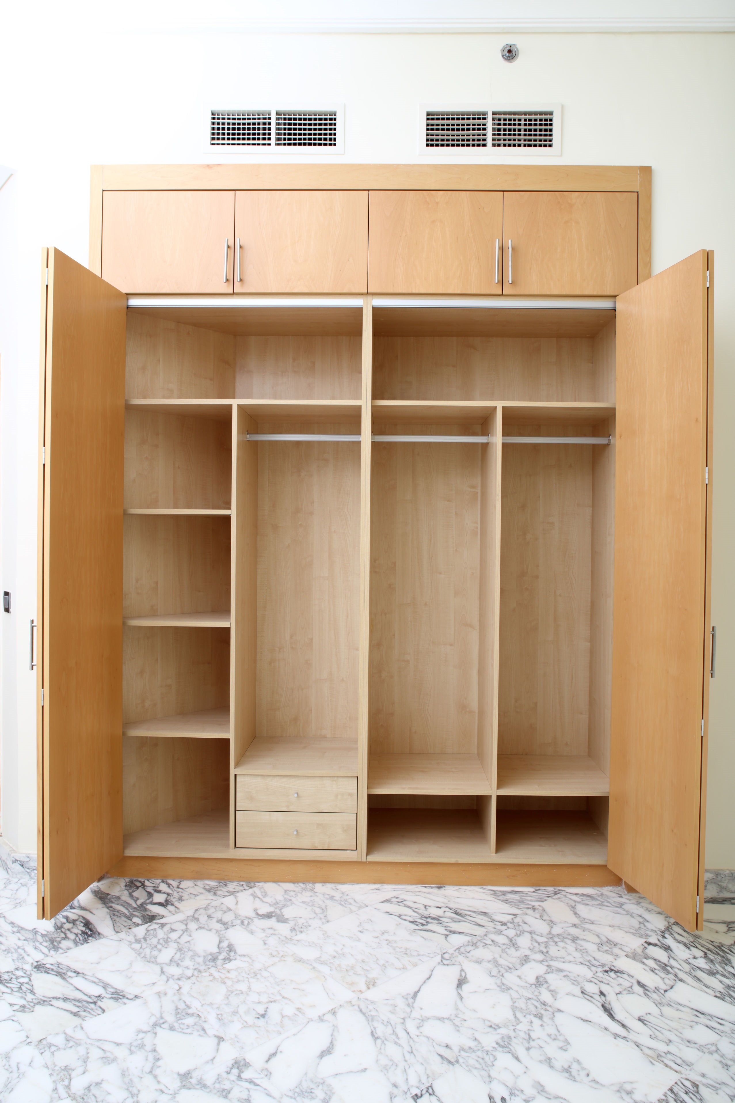 The design options for a wardrobe are practically endless with shutters, glass front, large sliding doors or a combination of some or all of them. When designing a completely customised wardrobe that fits in the space available, offering maximum storage while still being affordable is our primary aim. A wide range or wardrobe designs, differing in storage options, shutter styles and options, finishes, and color combinations.